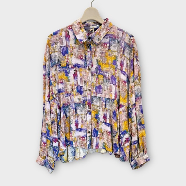 SANDY 幾何学柄シャツ 丸襟/タック入り <Size> F 肩幅56cm 身幅60cm 袖丈47cm 着丈64cm <Material> Rayon 80% Nylon 20% <Color> イエロー