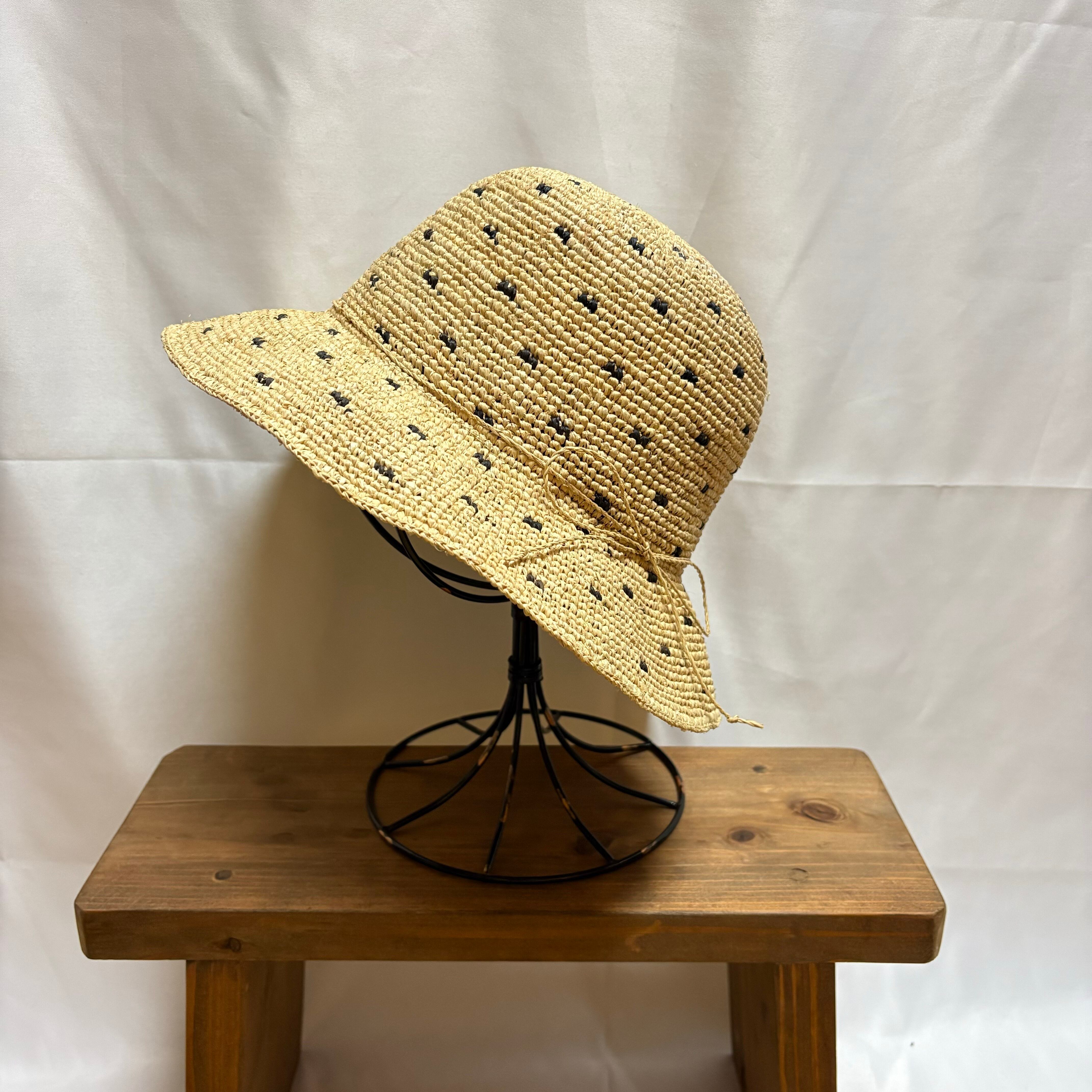 ドット刺繍ラフィアハット(クラウンの形状:丸)