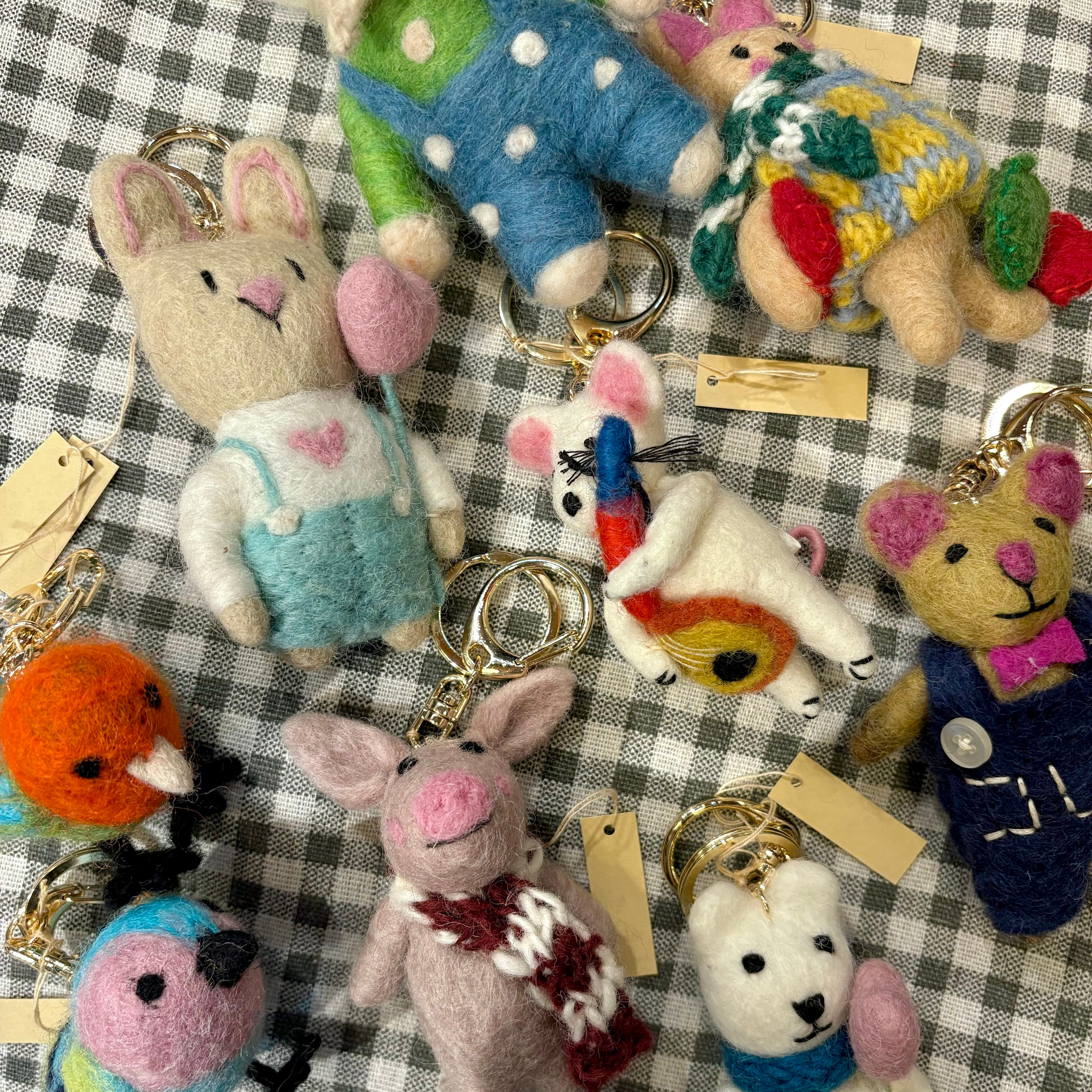 ひとつひとつ個性溢れる手作り感のある羊毛フェルトのアニマルチャーム達です。