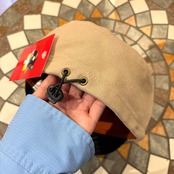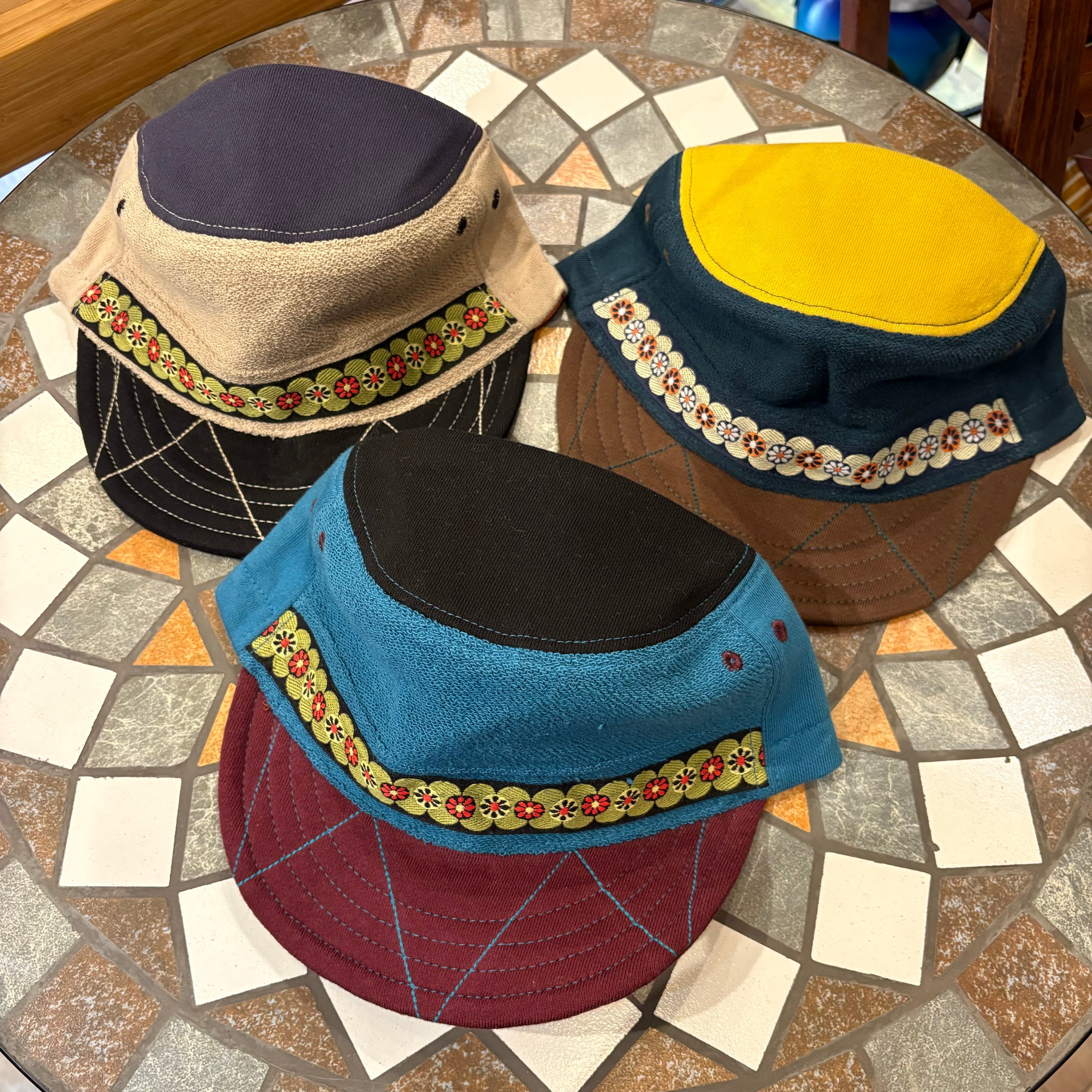 チロリアンテープとカラーブロックが可愛いワークキャップです。柔らかい布製、後ろにアジャスター付きです。