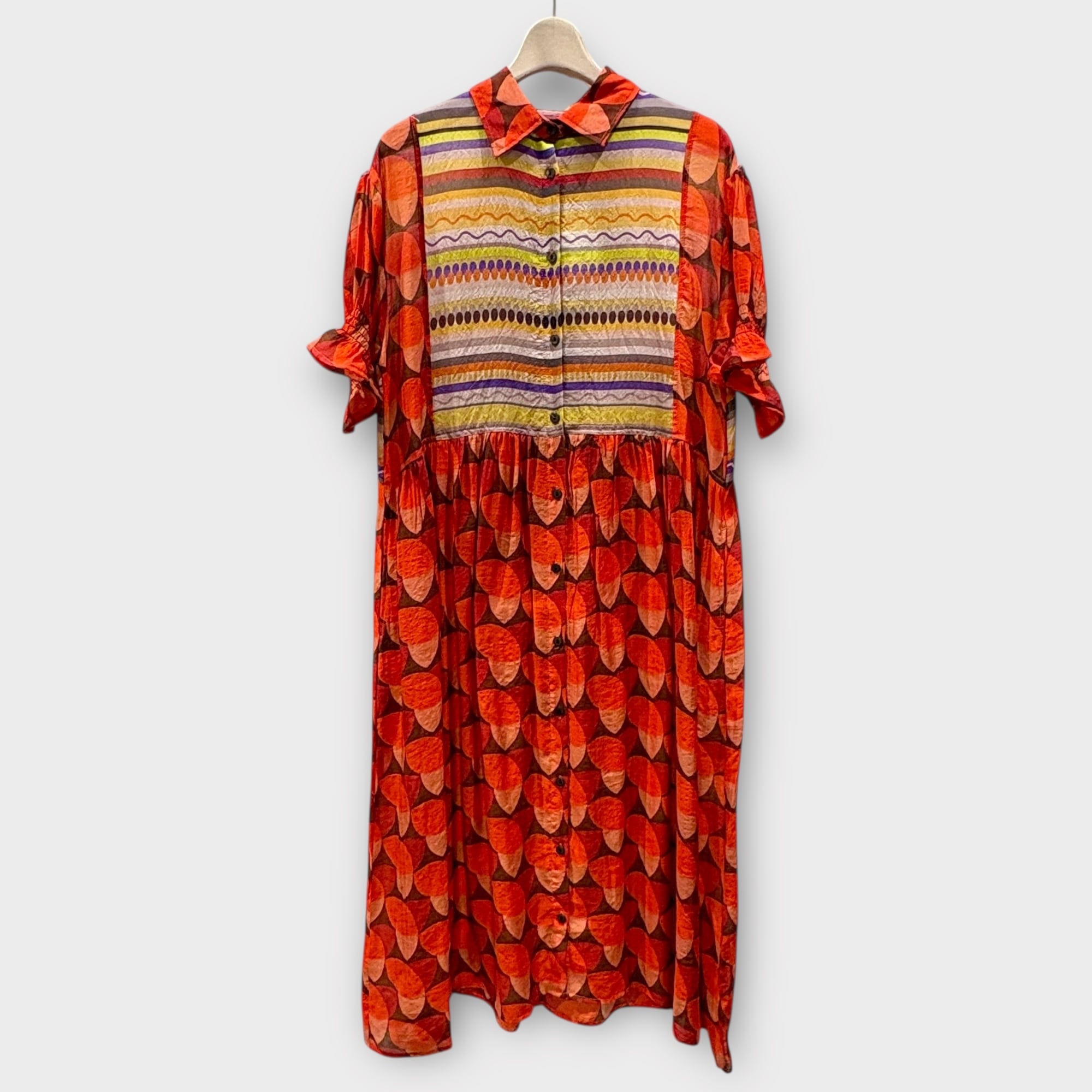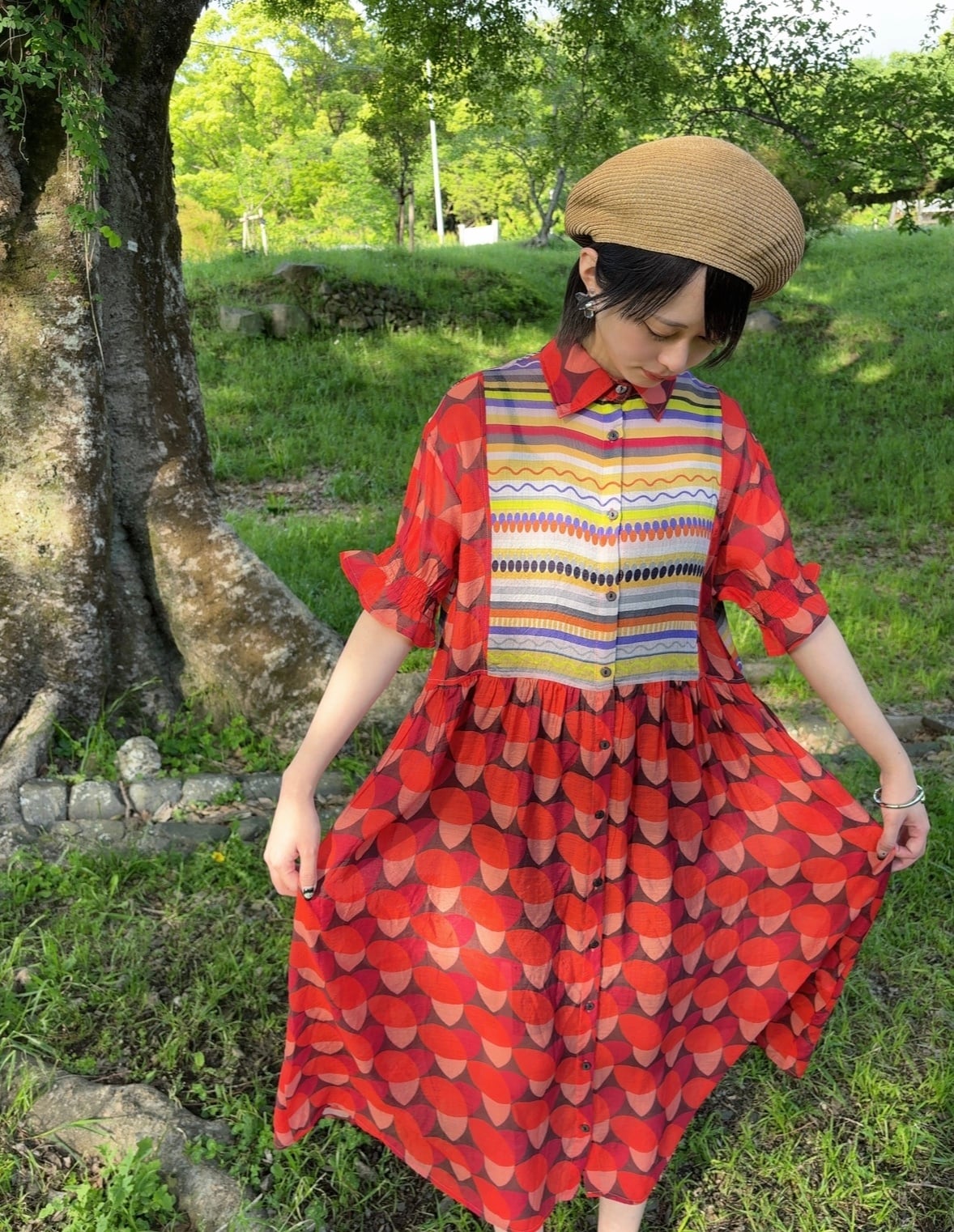 鮮やかなカラーに軽い生地感で夏にぴったりなワンピースです。