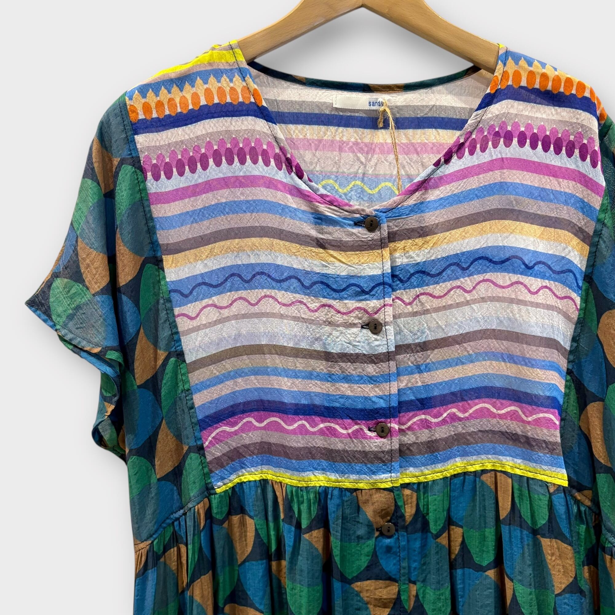 鮮やかなカラーに軽い生地感で夏にぴったりのワンピースです。