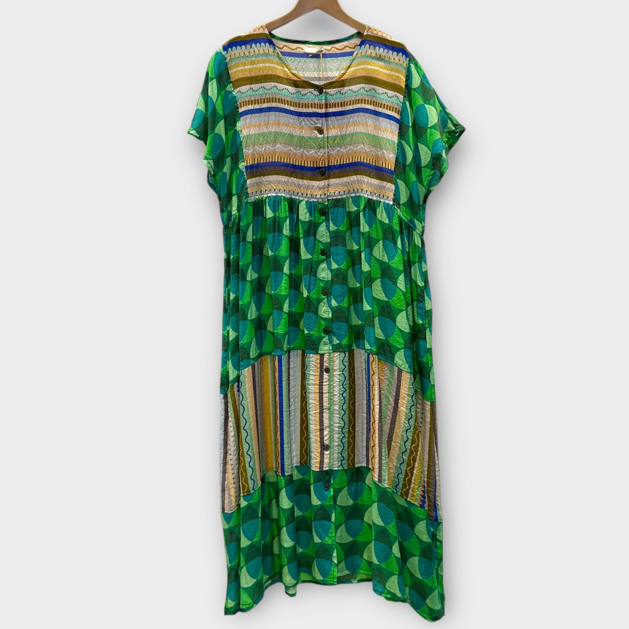 鮮やかなカラーに軽い生地感で夏にぴったりのワンピースです。