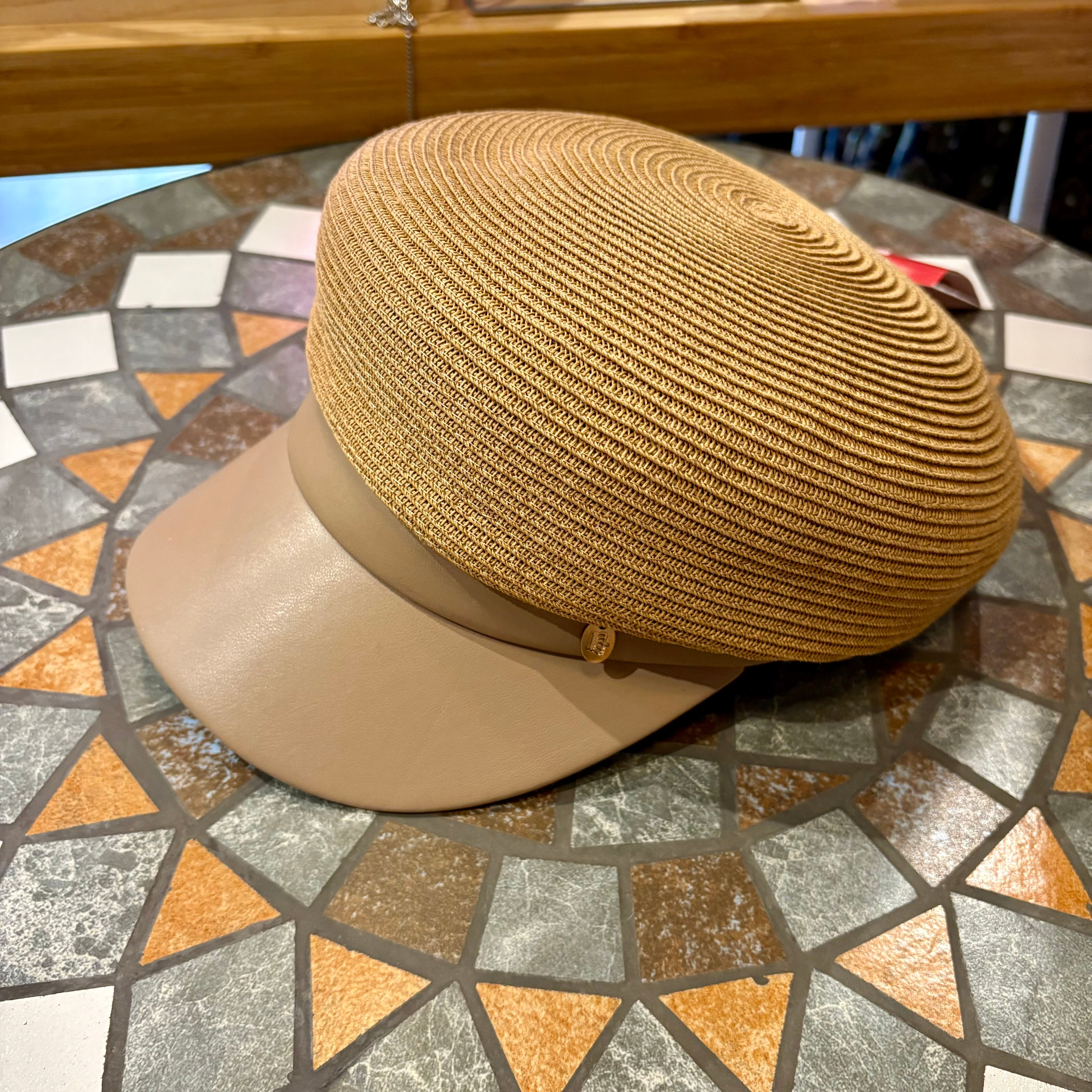 夏素材のペーパーにフェイクレザーのつばがおしゃれなキャスケットです。