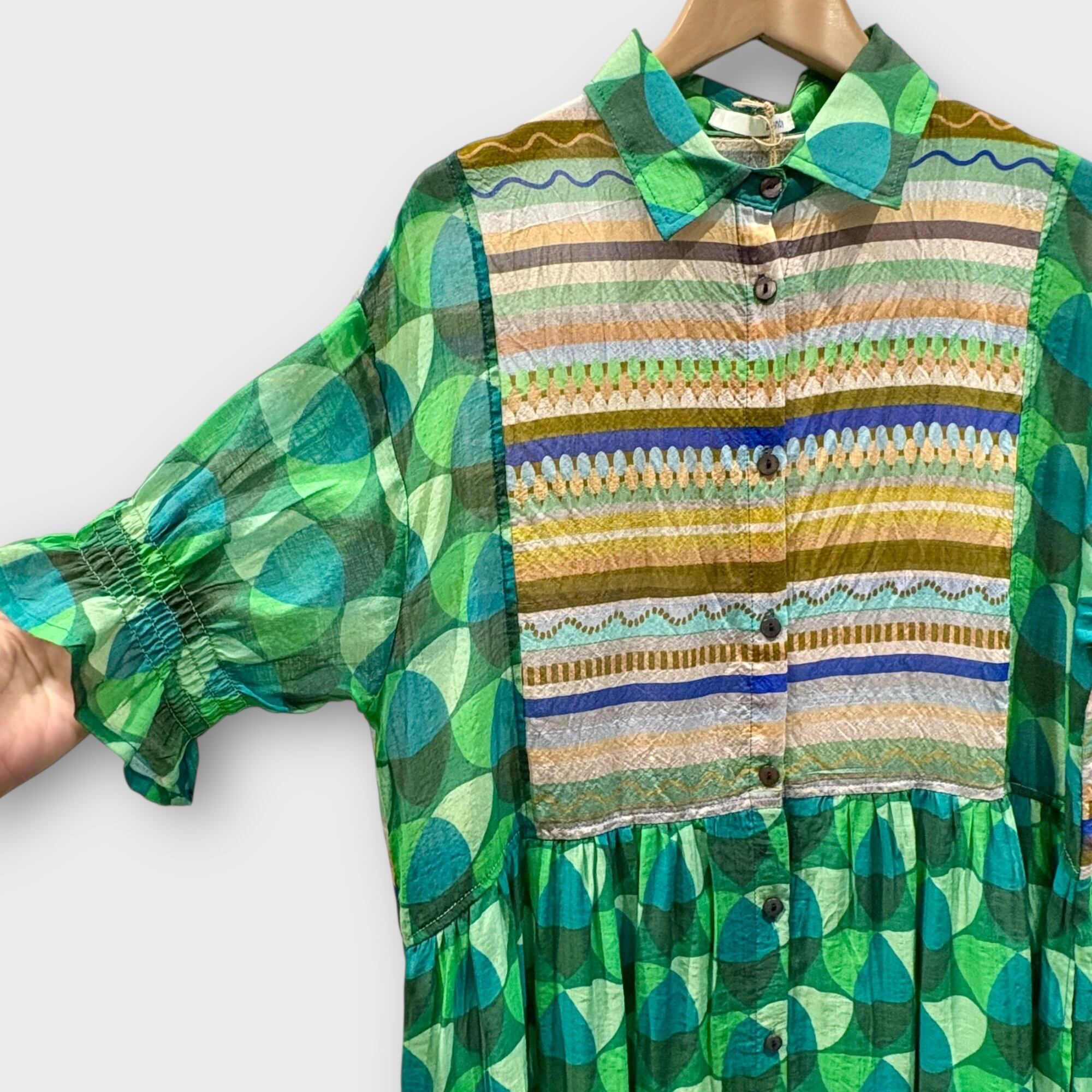 SANDY サークル×ストライプ シアーパフスリーブワンピース