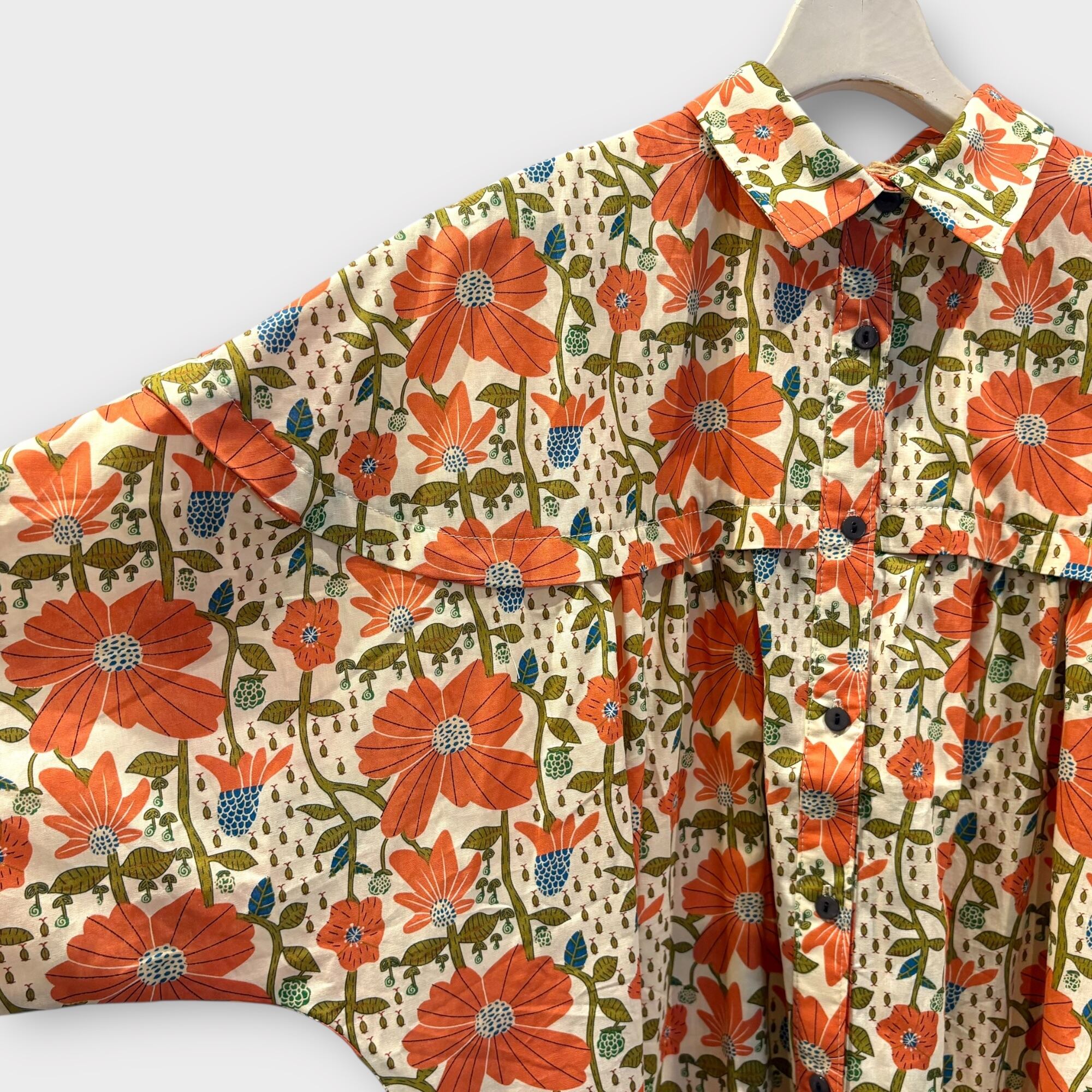 レギュラーカラーにドルマンスリーブのコットンブラウスです。