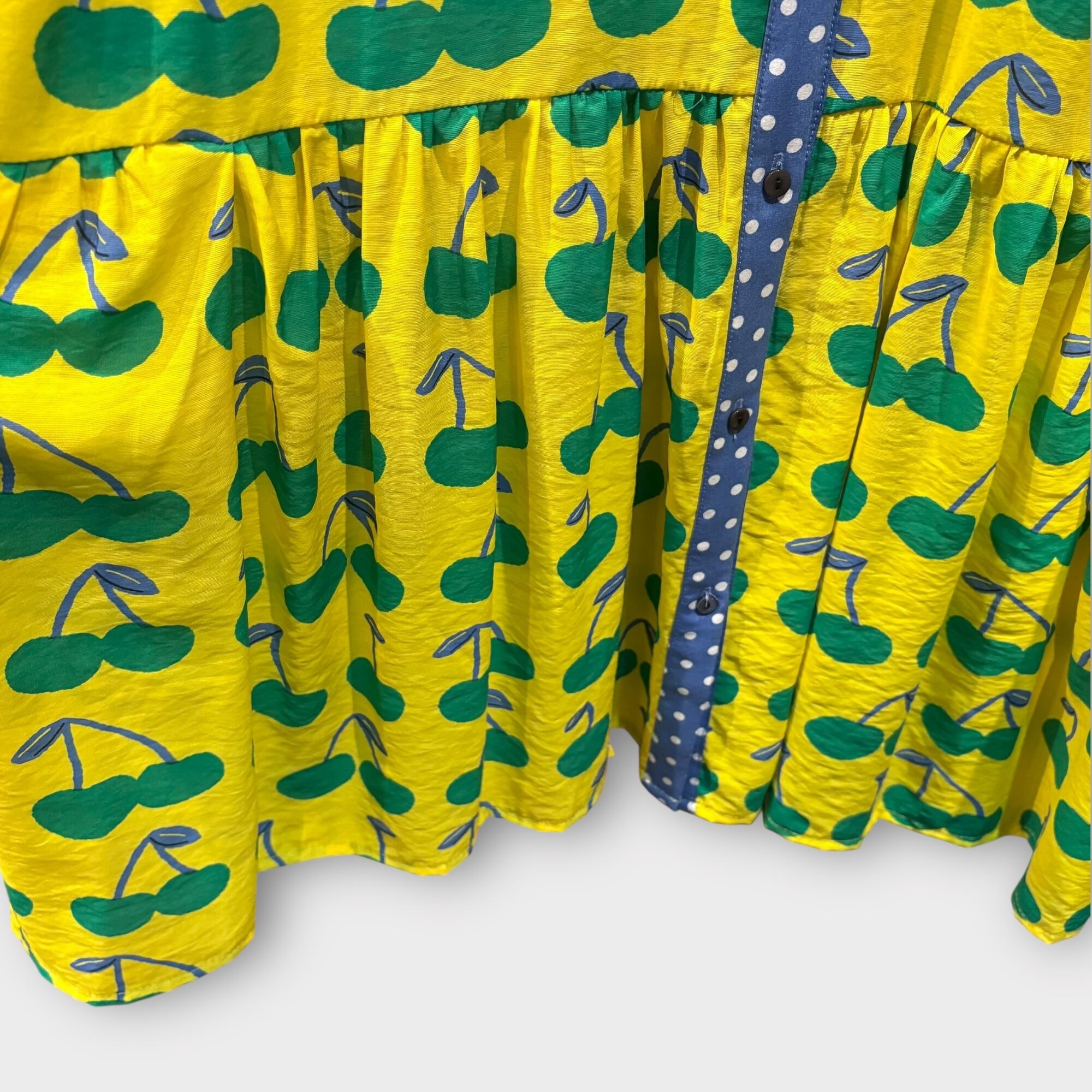 ポップな色合いのさくらんぼとドットの切り替えが可愛いシャツワンピースです。