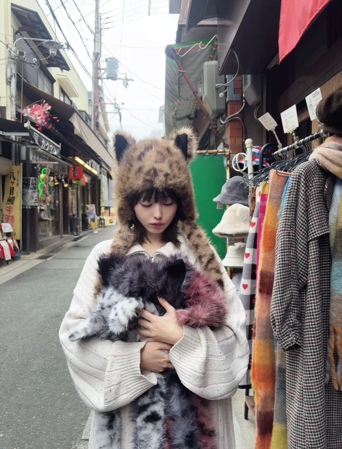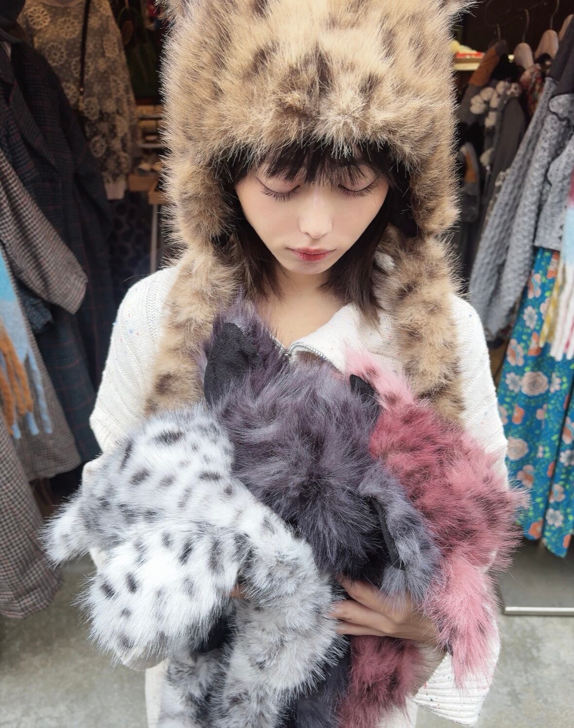 ミックス猫耳のファー帽子です。