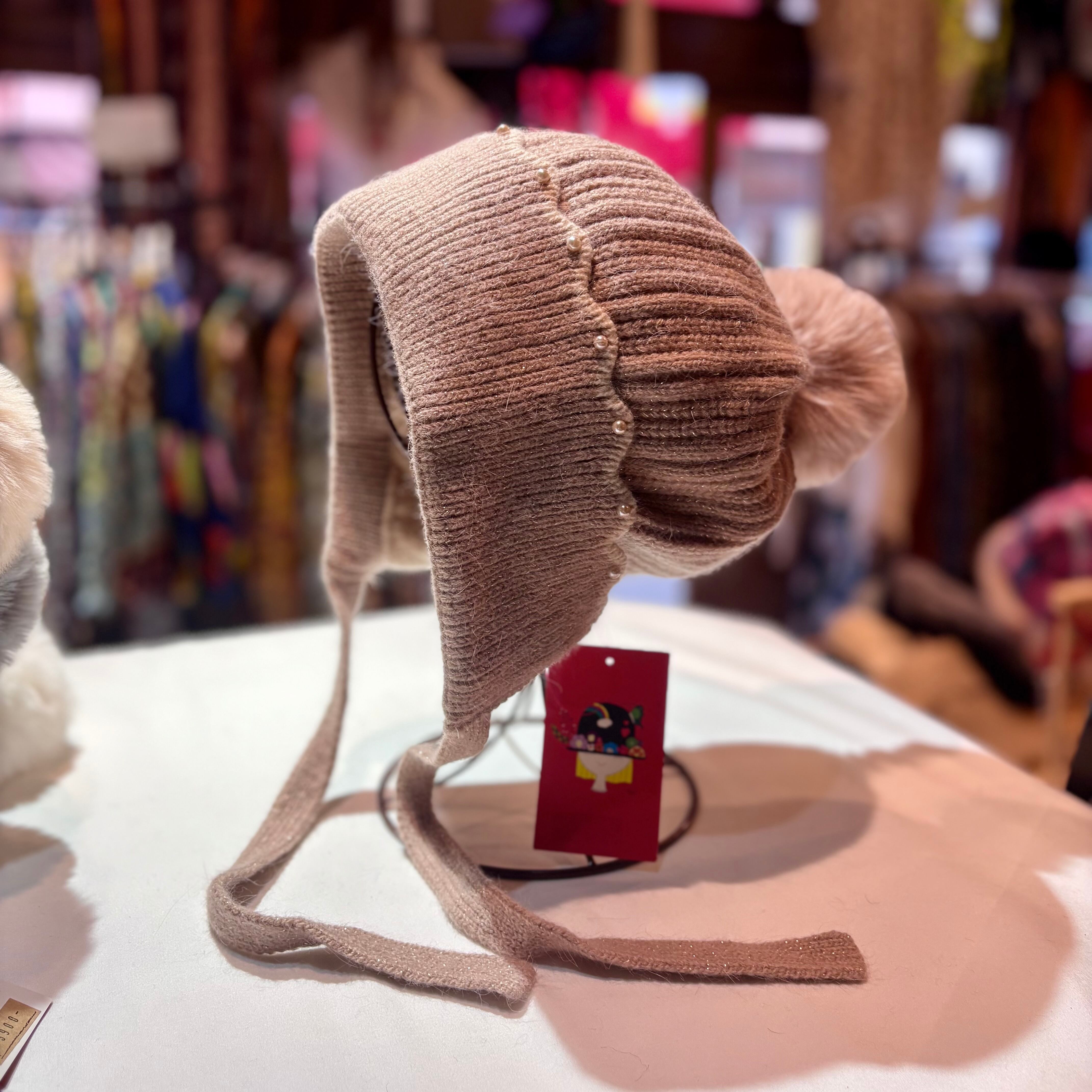 きらきらポンポン付きニットビーニー